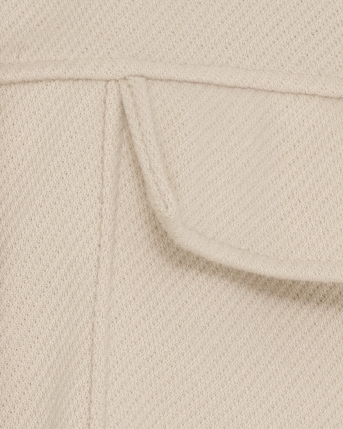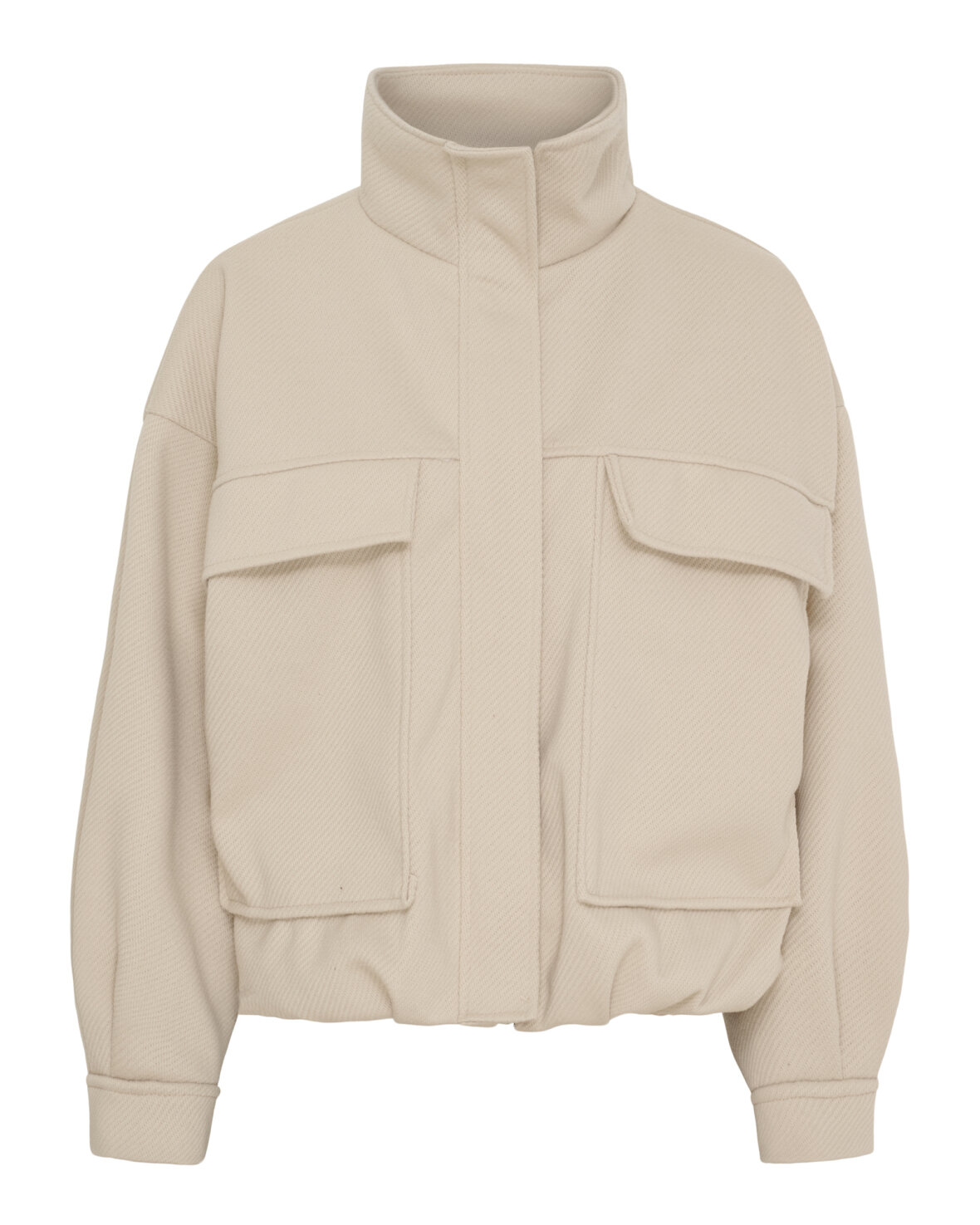 Jakke 7896 fra Marta Du Chateau i beige. Cool kort jakke med høj hals, lange ærmer og let balloneffekt nederst. Jakken lukkes med lynlås.