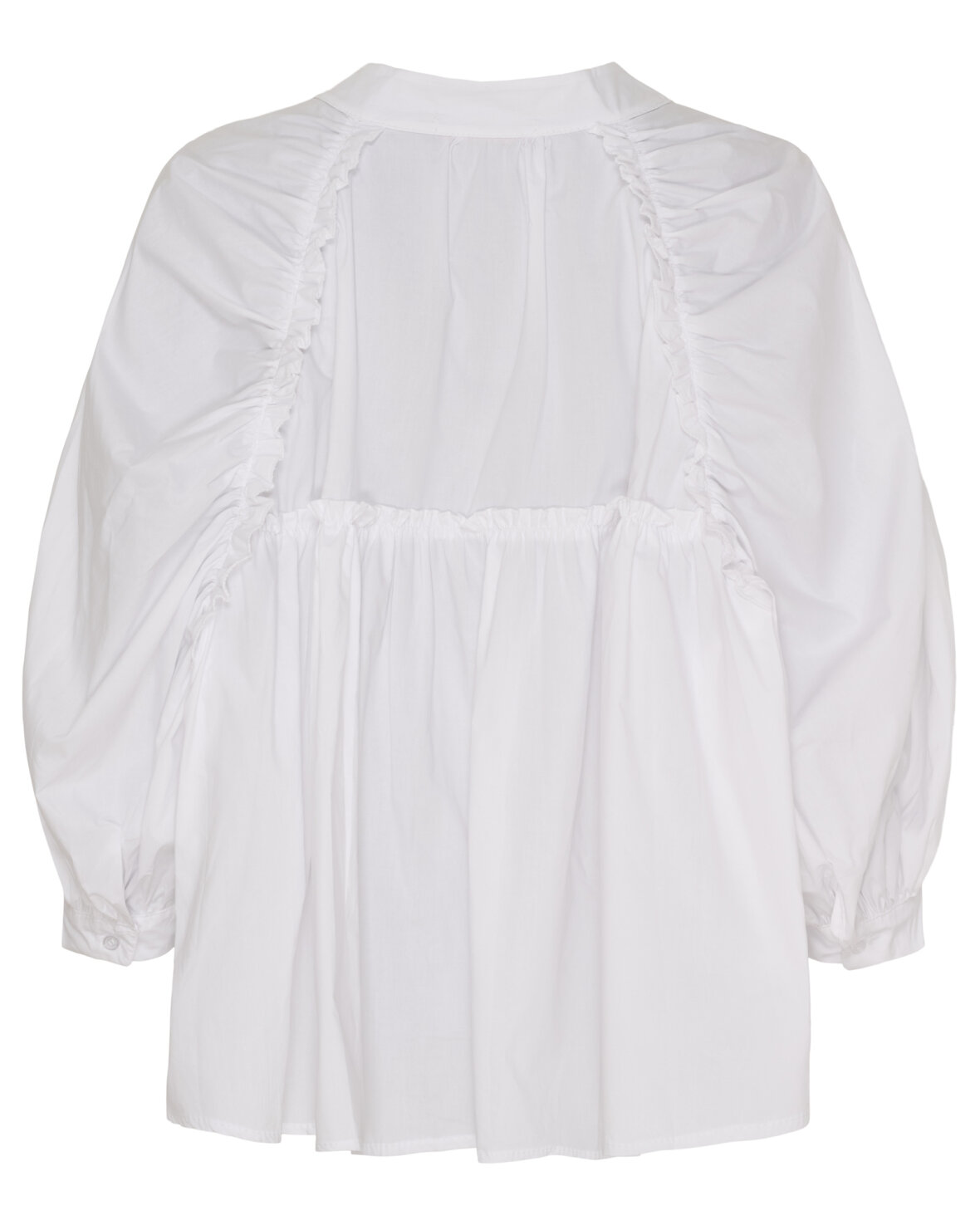 Skjorte 268191 fra Marta Du Chateau i hvid. Skøn skjorte med rund hals, gennemknappet og med let volume på ærmerne. Skjorten har den fineste ryg.