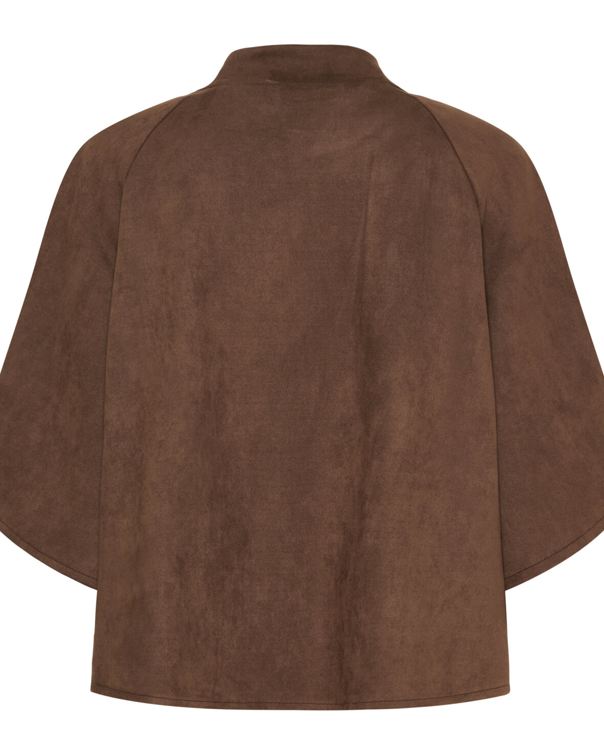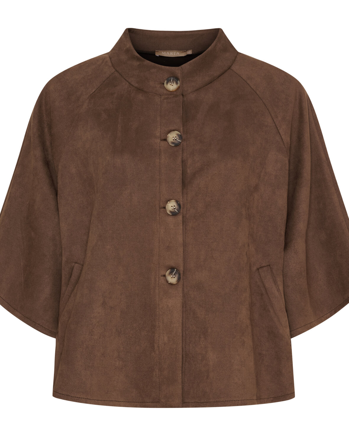 Jakke 248370 fra Marta Du Chateau i brun. Lækker kappe/cardigan der passer til det hele. Gennemknappet og med 3/4 lange ærmer med vidde.