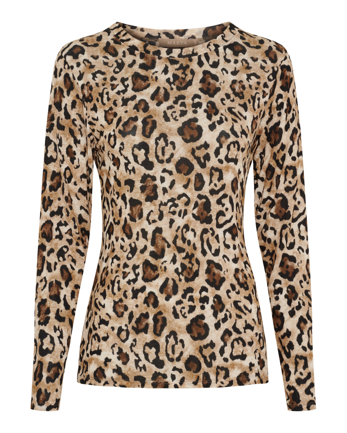 Top 7914 fra Marta Du Chateau i leopard mønster. Blød og lækker "mesh" i modal med rund hals og lange ærmer.