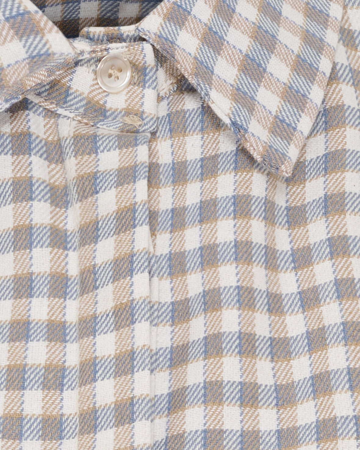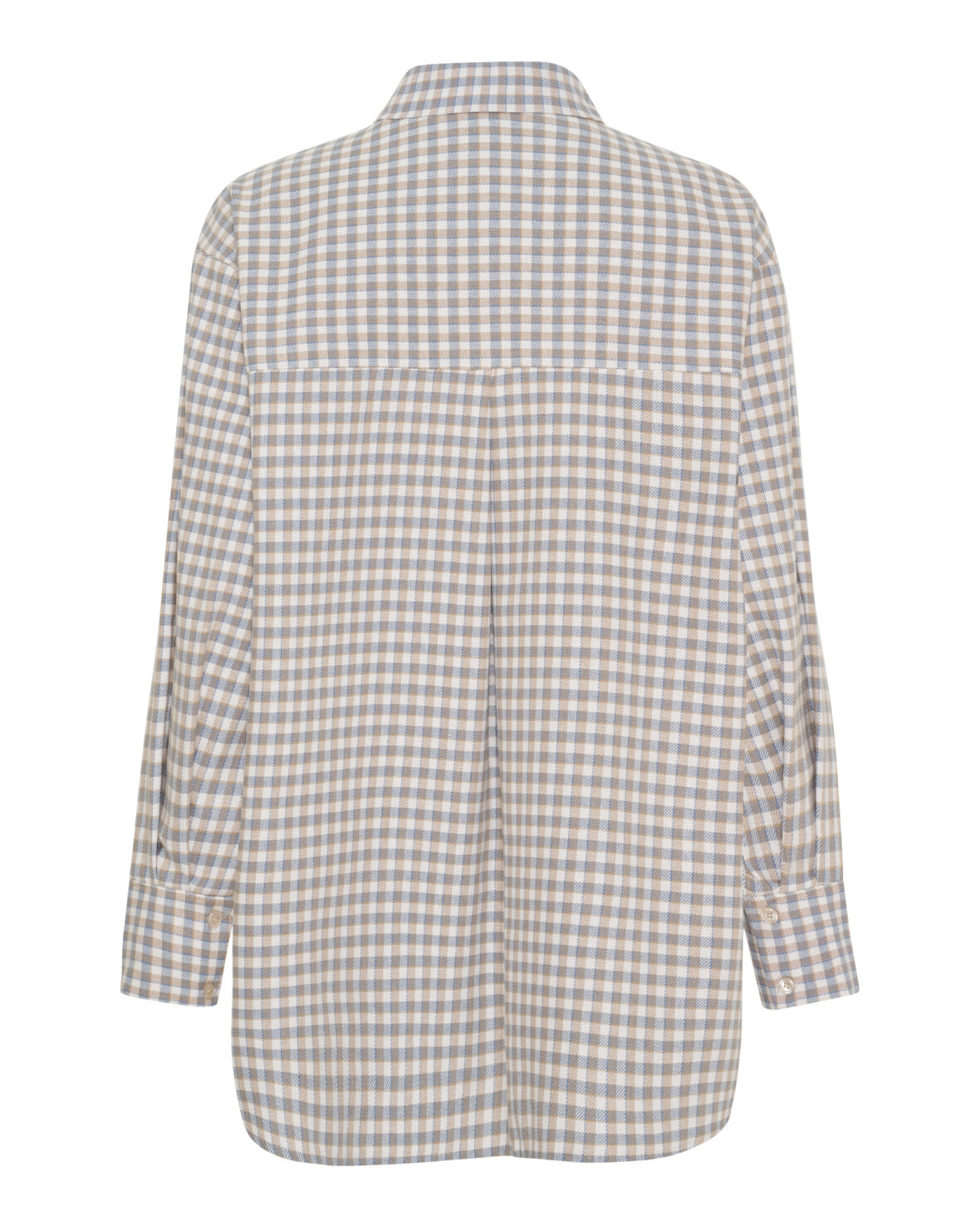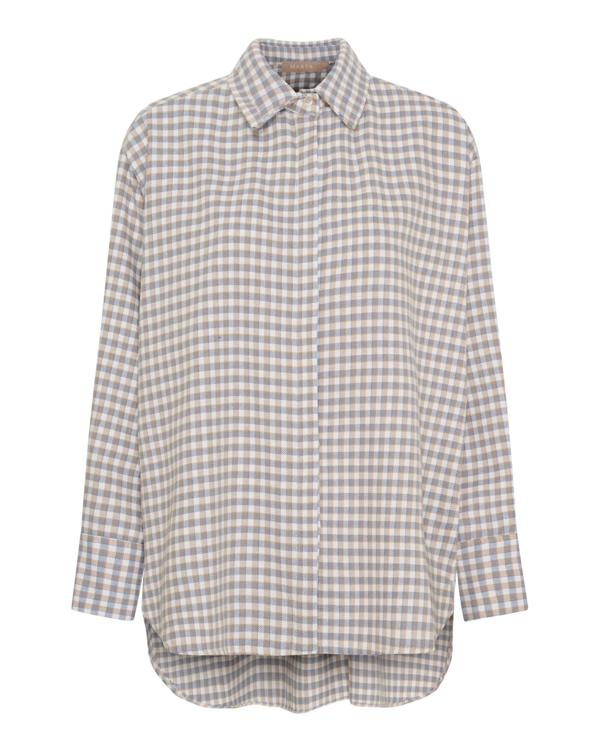 Ternet skjorte 7497 fra Marta Du Chateau i blå. Skøn stor-skjorte i tern med klassisk krave, gennemknappet og med lange ærmer. Skjorten er lidt kortere foran end bagpå.