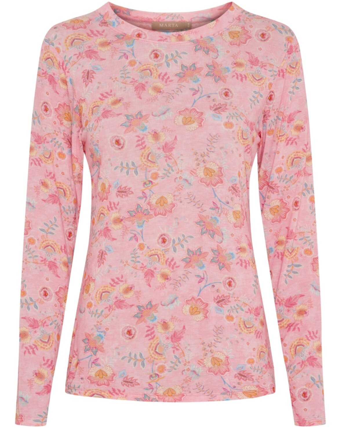 Top 7914 fra Marta Du Chateau i rosa med skønt mønster. Blød og lækker "mesh" i modal med rund hals og lange ærmer.
