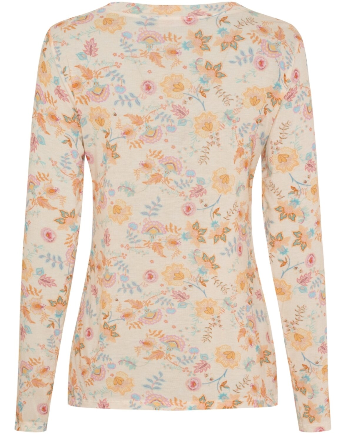 Top 7914 fra Marta Du Chateau i beige med skøn mønster. Blød og lækker "mesh" i modal med rund hals og lange ærmer.