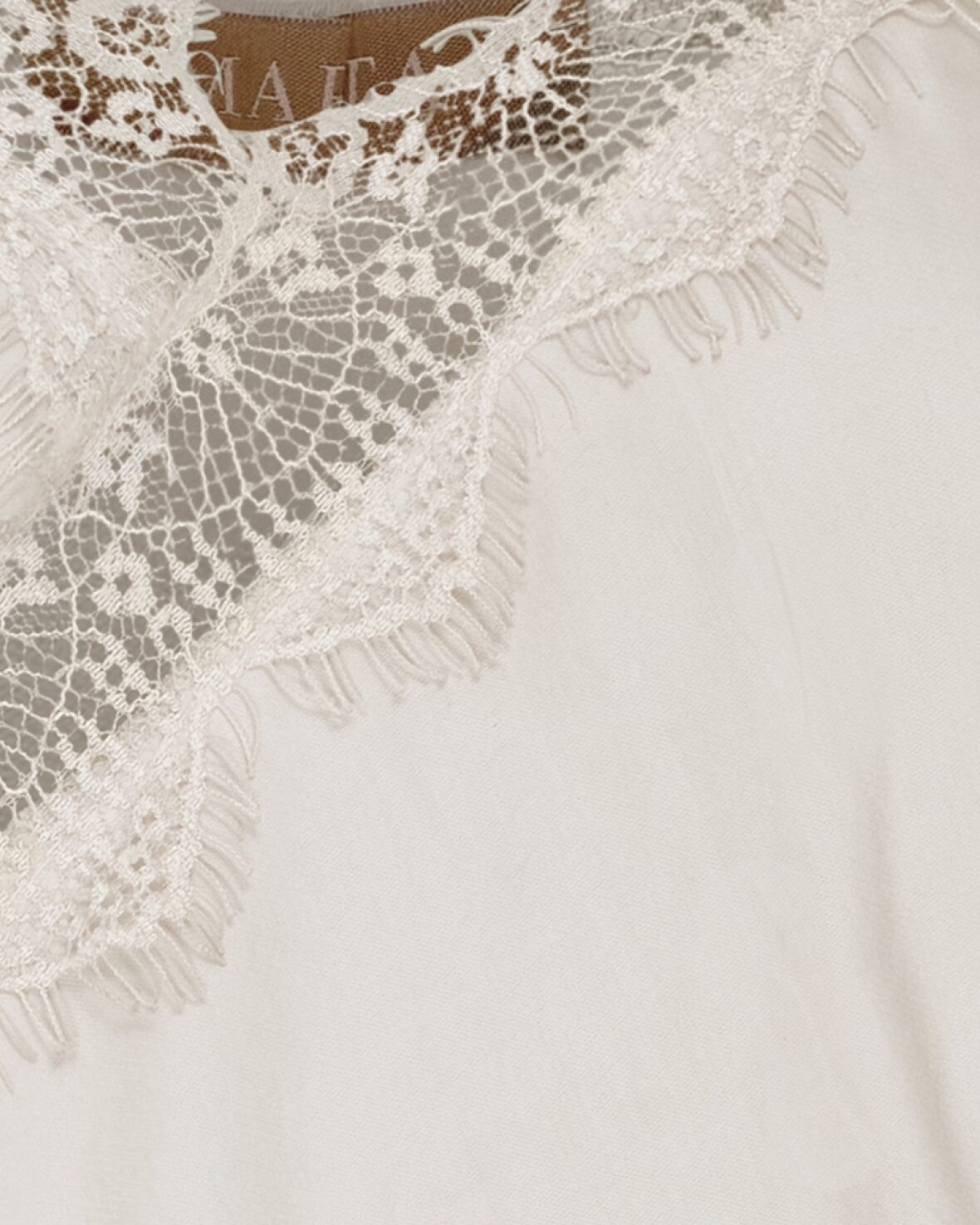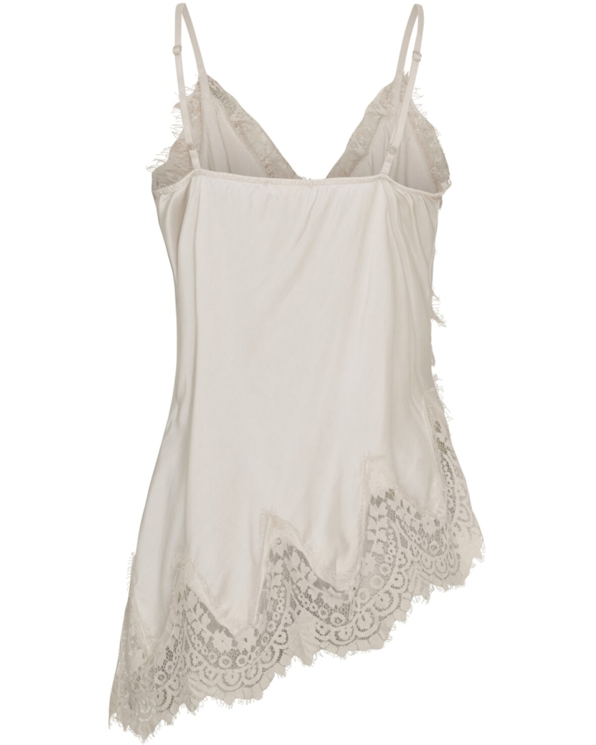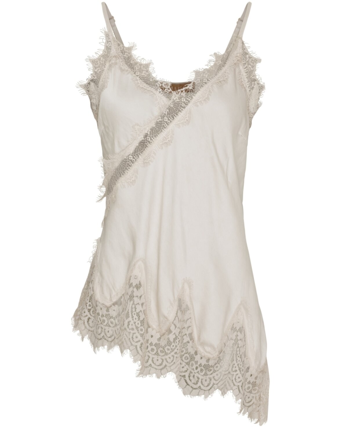 Top 23408 fra Marta Du Chateau i beige. Sød blonde top med tynde reguler bare stropper og asymmetrisk i bunden.