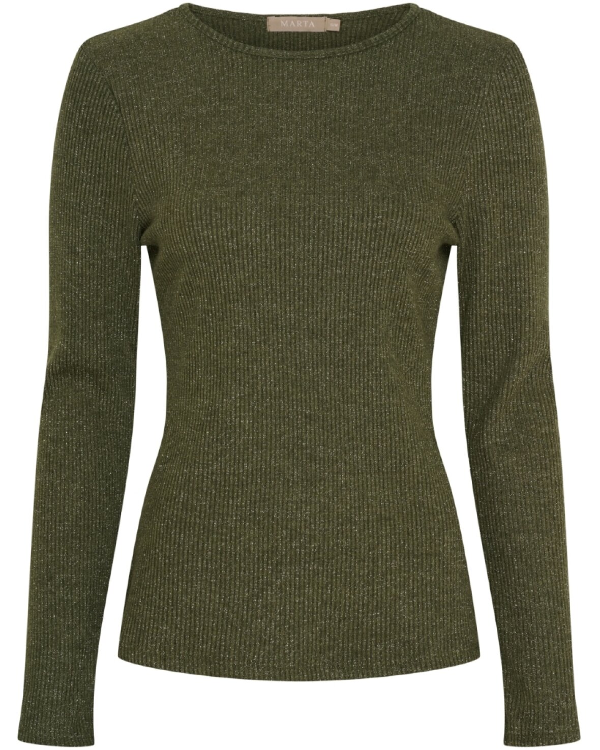 T-shirt 38915 fra Marta Du Chateau i grøn. Lækker basis t-shirt med lange ærmer og let glimmer effekt.