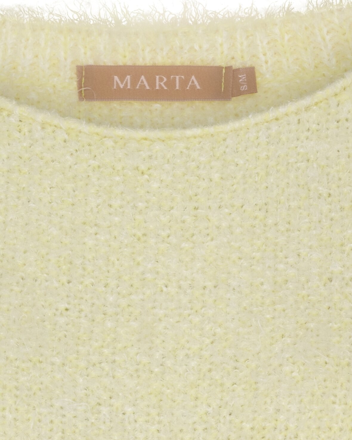 Strik 8038 fra Marta Du Chateau i sart gul. Vamset og lækker blød strikketrøje. Strikketrøjen har rund hals og let stumpende ærme, smuk med blonde eller mesh under.