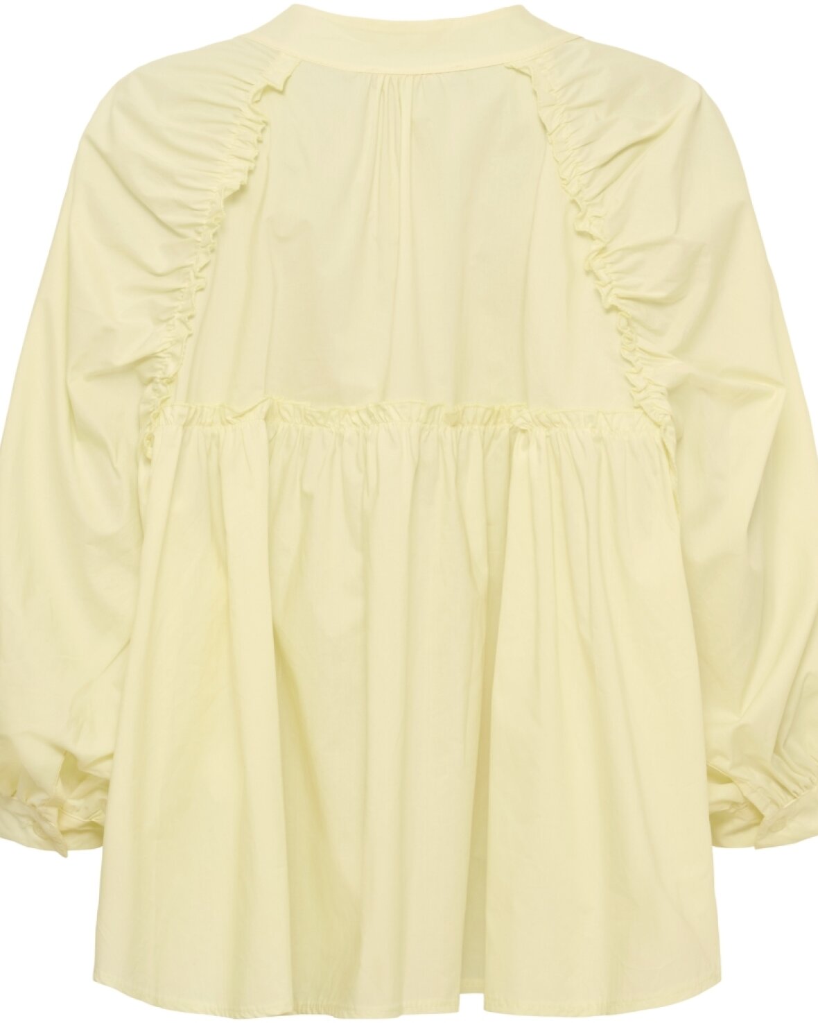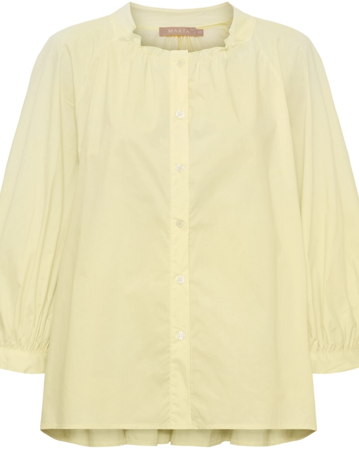 Skjorte 268191 fra Marta Du Chateau i gul. Skøn skjorte med rund hals, gennemknappet og med let volume på ærmerne. Skjorten har den fineste ryg.