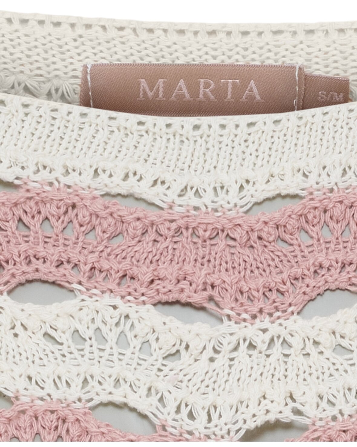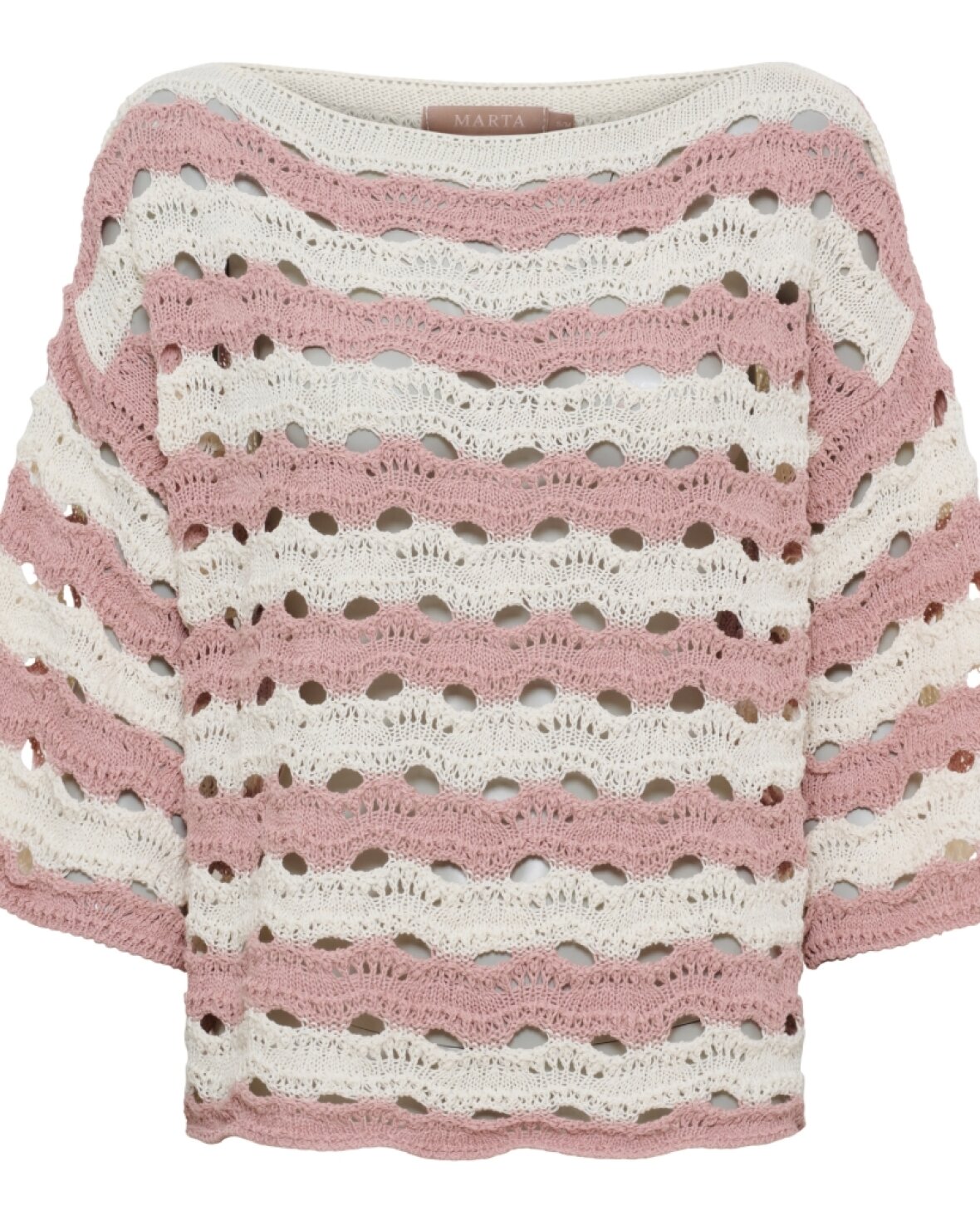 Strik KN8135 fra Marta Du Chateau i creme med gammelrosa. Smuk strik med flot hul mønster.