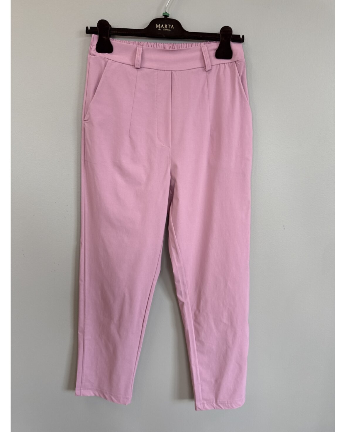 Buks 256422LB fra Marta Du Chateau i rosa. Lækreste og bløde buks med masser af stretch, 7/8 længde, fast linning foran og elastik linning bagpå. Modellen er med skrålommer foran og snyde lommer bagpå og er lige til at trække op.