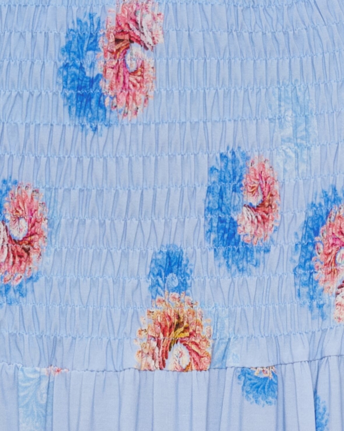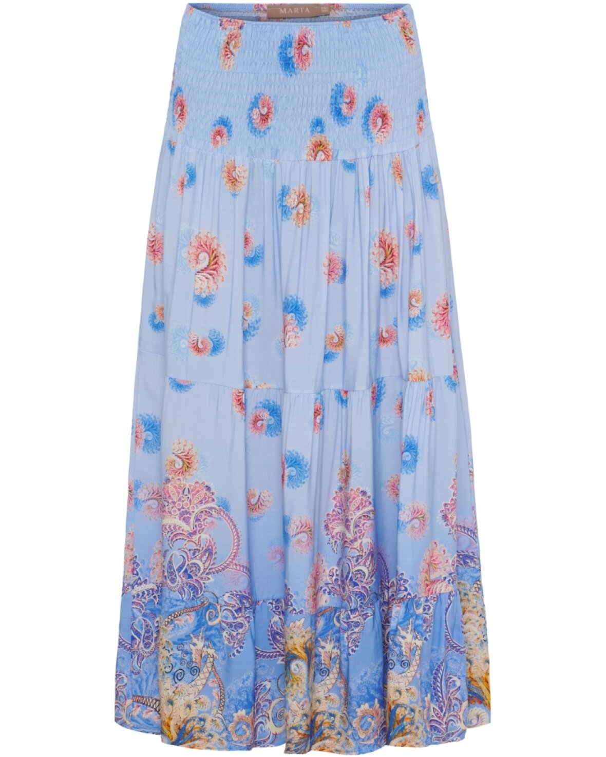 Nederdel TEEN 5849 fra Marta Du Chateau i friske farver og smukt print. Smock foroven og falder smukt på.