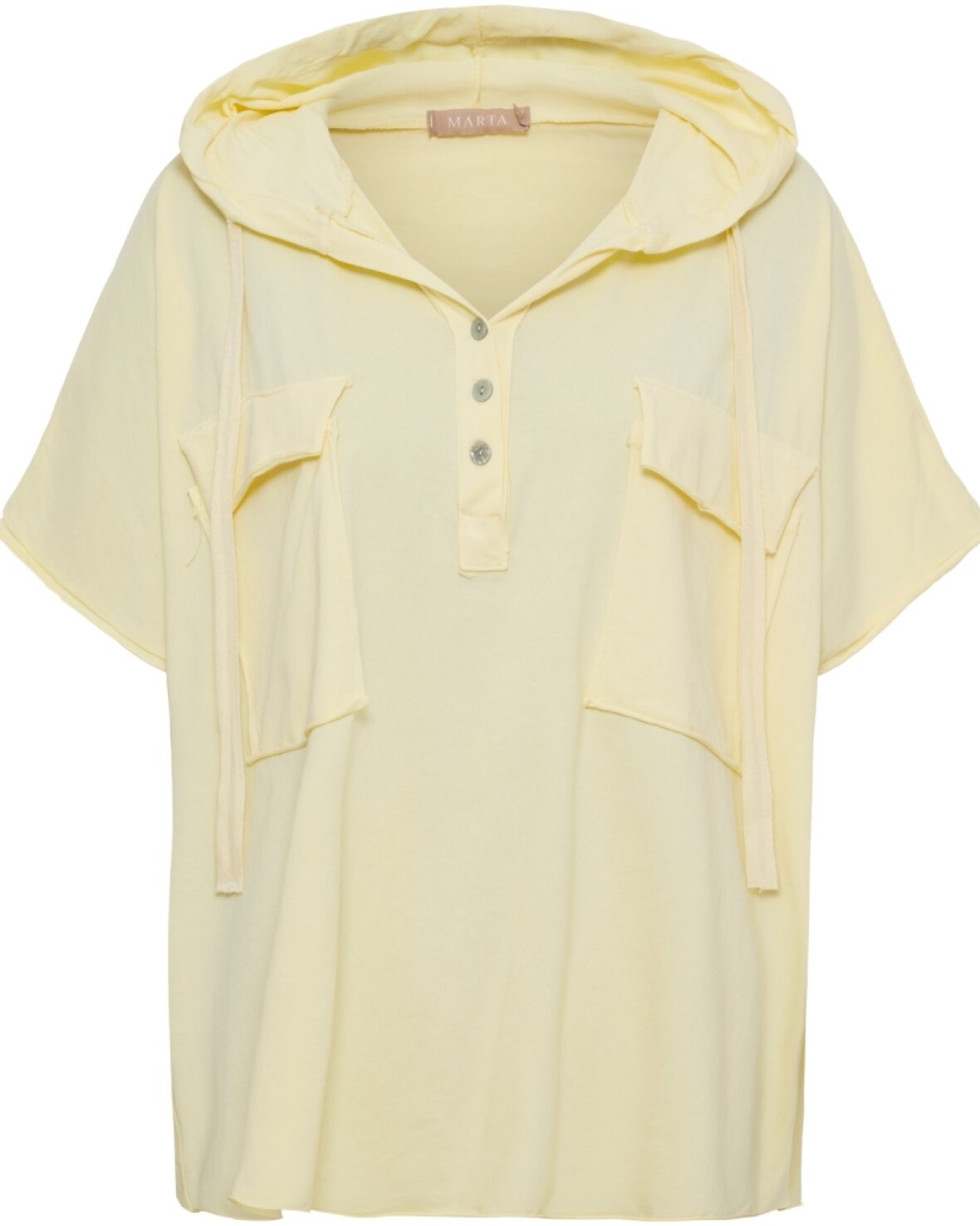 Bluse 26043 fra Marta Du Chateau i gul. Blød og lækker bluse med let vidde, fede detaljer og hætte.