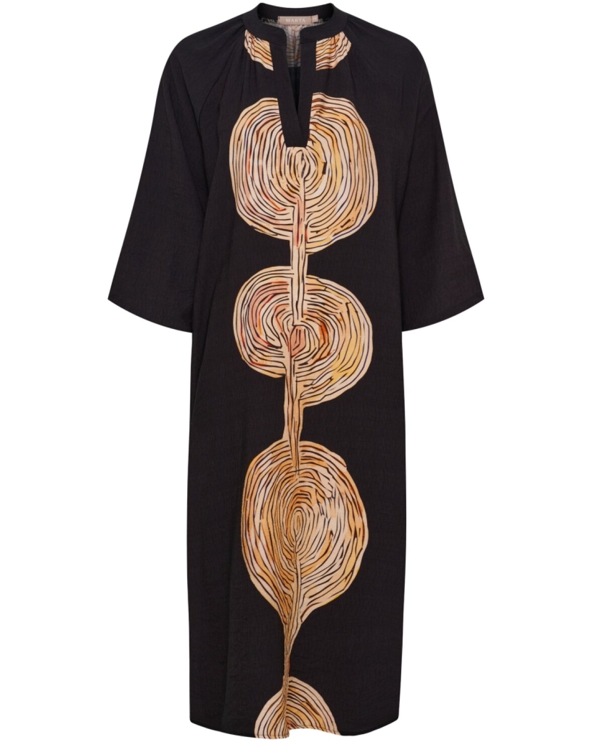 Kjole 59730 fra Marta Du Chateau i sort med fint mønster ned foran og bagpå. Kjolen har v-udskæring og 3/4 lange ærmer. Skøn kjole til sommer.