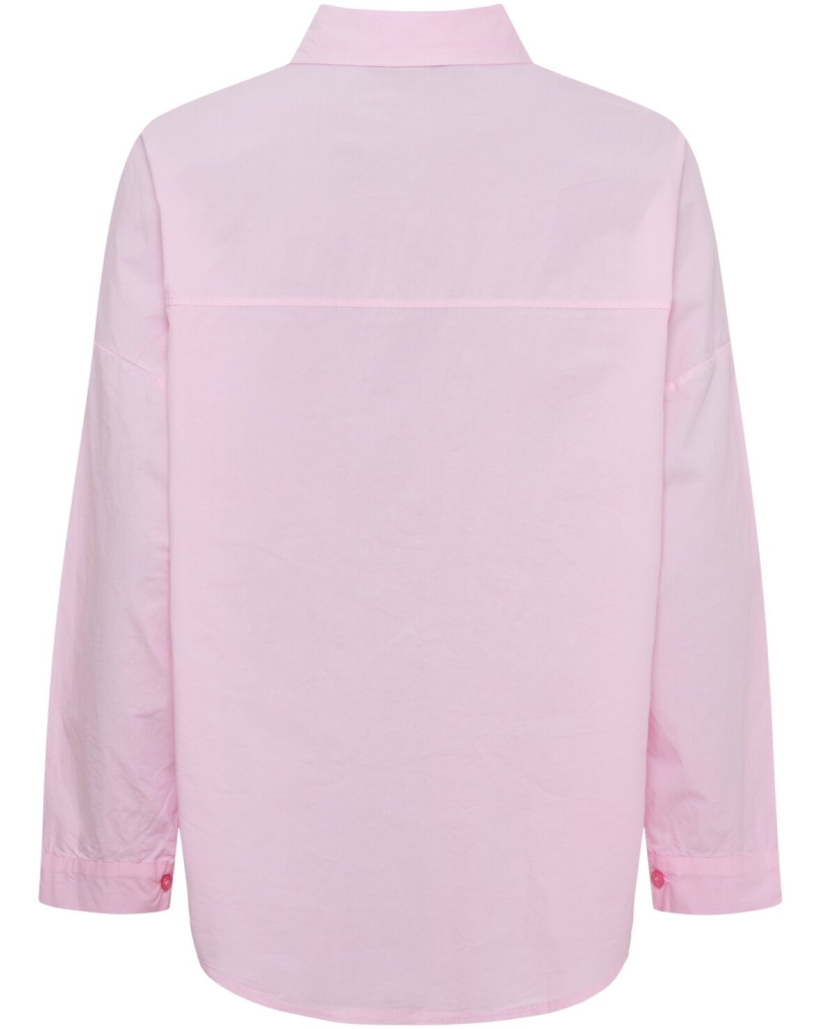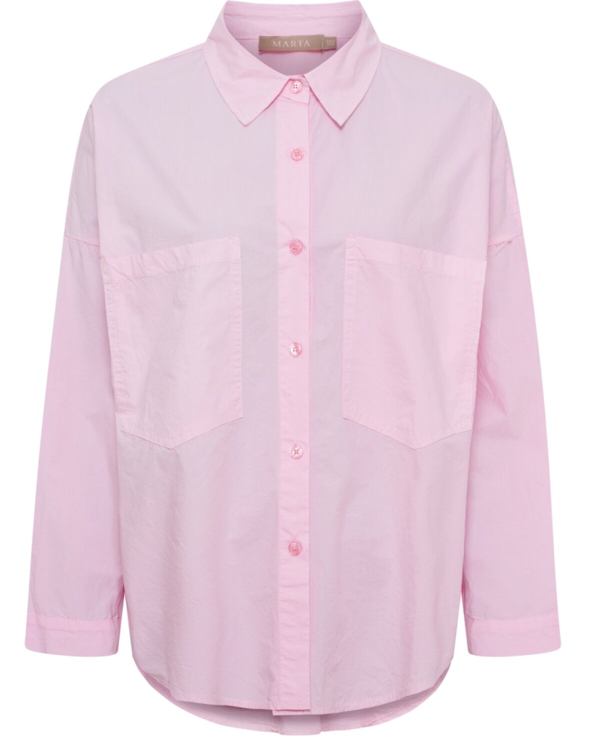 Skjorte 85530 fra Marta Du Chateau i rosa. Skøn oversize skjorte med klassisk krave, lange ærmer og gennemknapning.