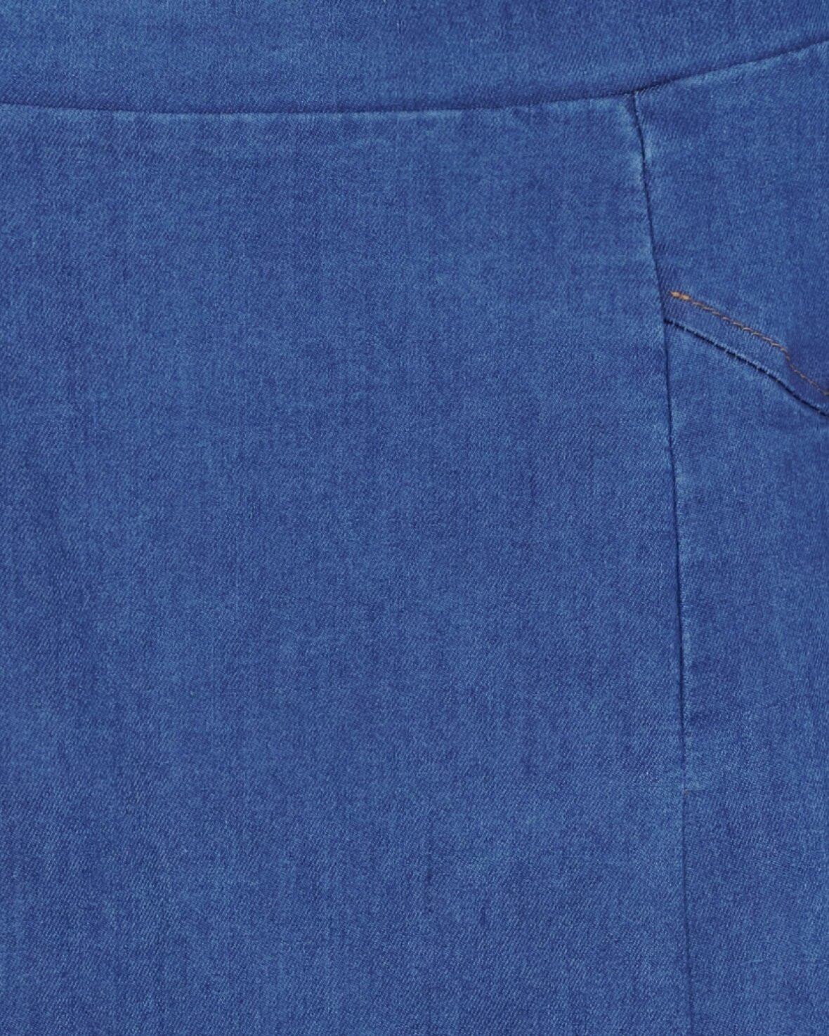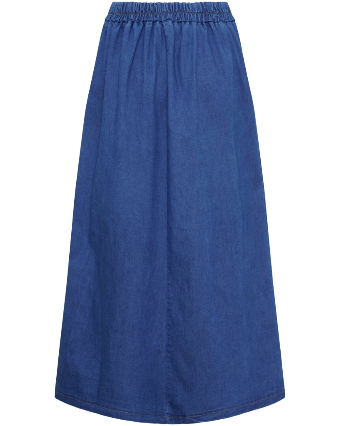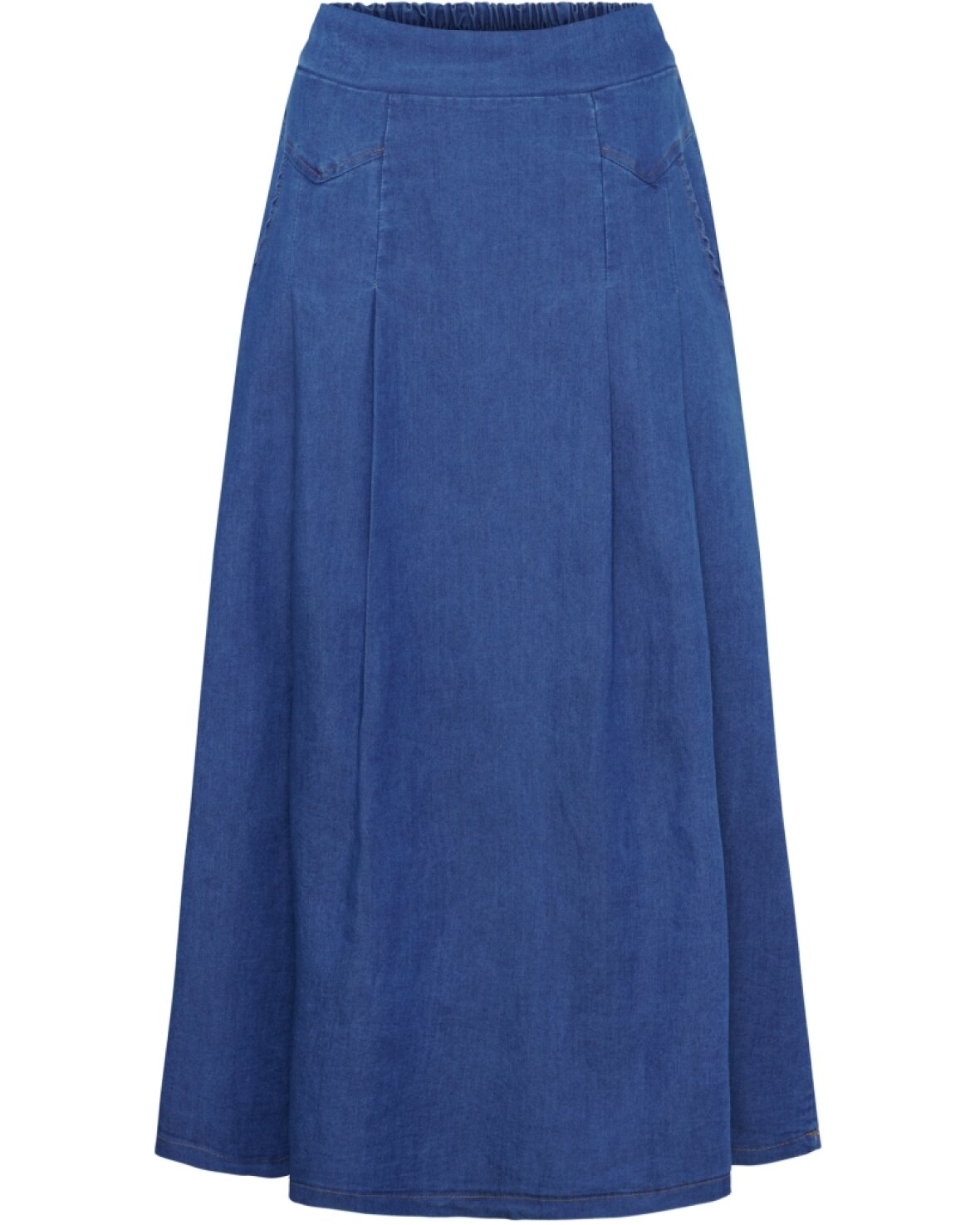 Nederdel SW57123 fra Marta Du Chateau i medium denim. Smuk nederdel med fast linning foran og elastik bagpå. Nederdelen har skrålommer og læg foran.