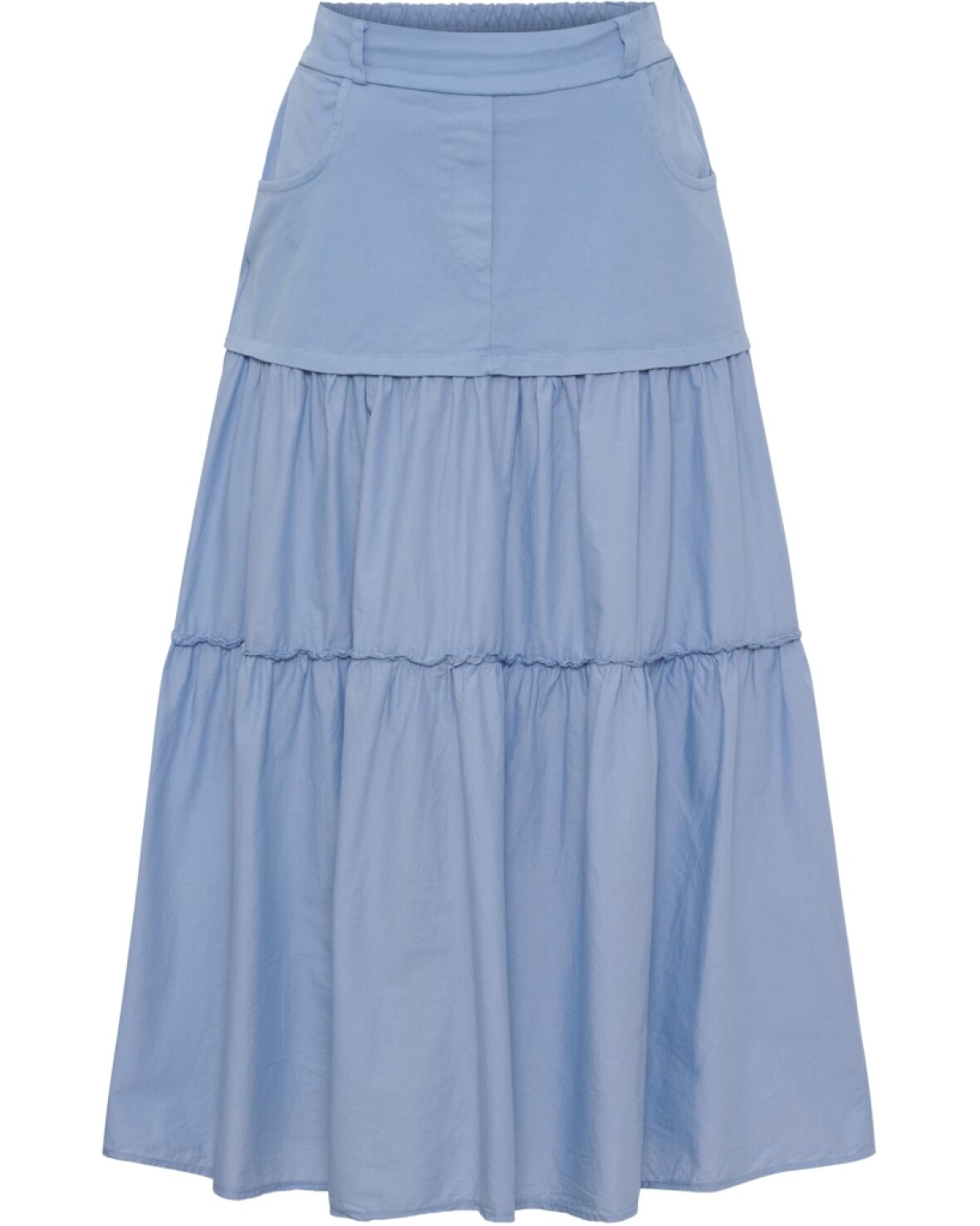 Nederdel 57117 fra Marta Du Chateau i jeans blå. Super cool nederdel med fast stykke øverst og to lag i bomuld. Skøn nederdel at gå sommeren i møde i.