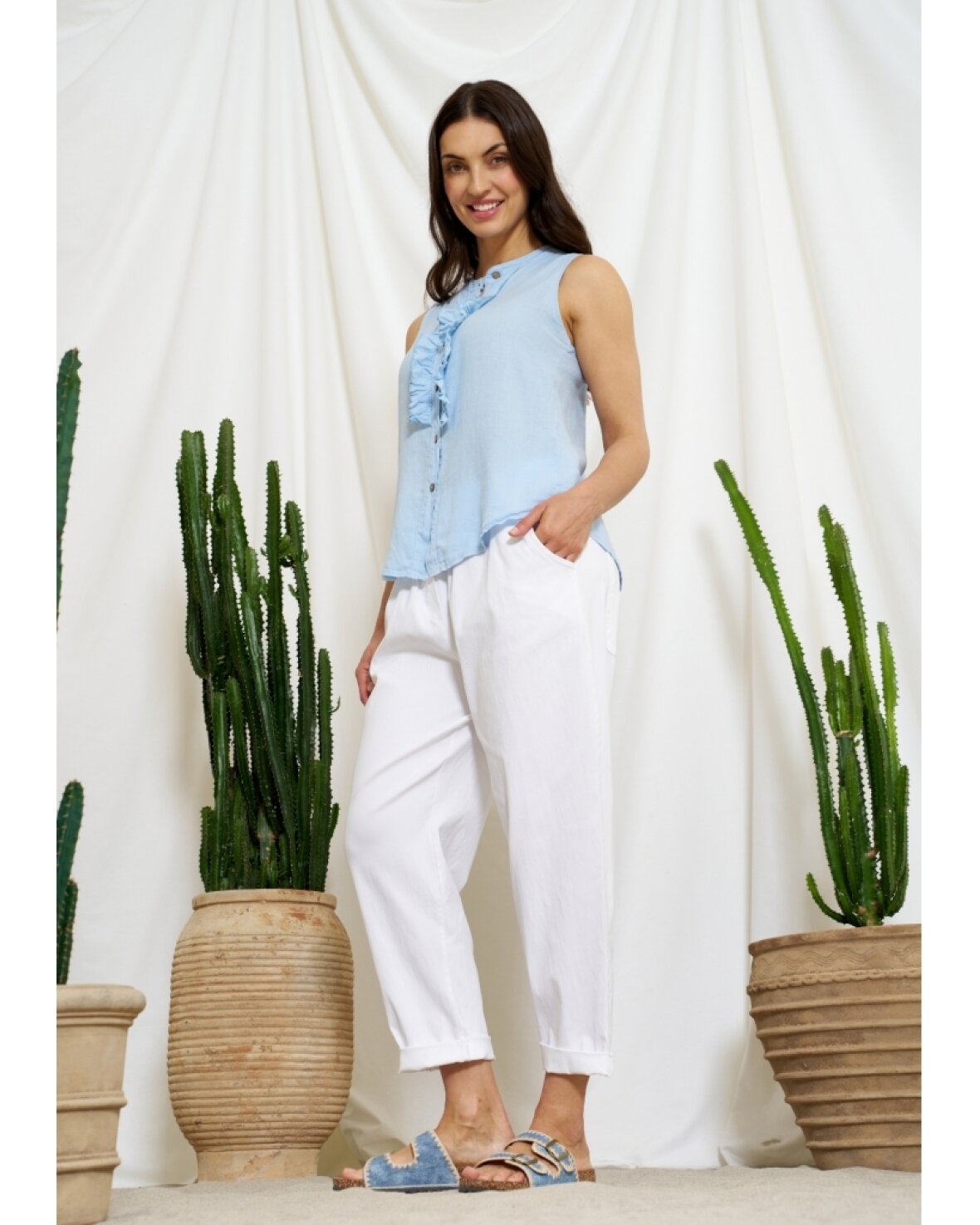 Buks 8594 fra Marta Du Chateau i hvid. Skøn buks med elastik i linningen, skrålommer og fin rummelighed.